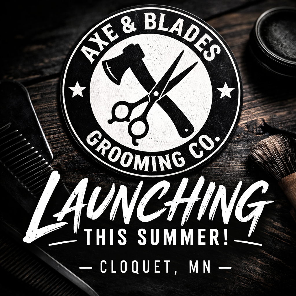 We are Axe and Blades. Our name is inspired by our local mascot, The Lumber Jacks. I myself, am a Cloquet graduate and after many years of working in the mens haircutting field, I thought it was time to bring a Mens Haircutting shop to our own community.